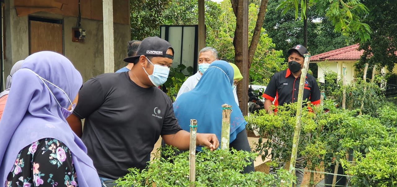 Bantuan barangan keperluan makanan daripada Pengerusi Jawatankuasa Pembagunan dan Keselamatan Kampung Rumpun Makmur kepada ahli keluarga di Rumpun Makmur yang terlibat dalam untuk kuarantin.