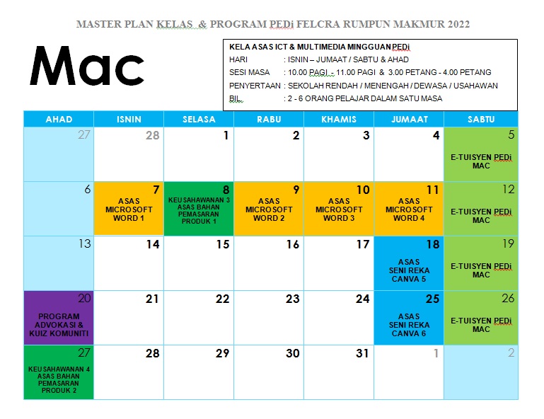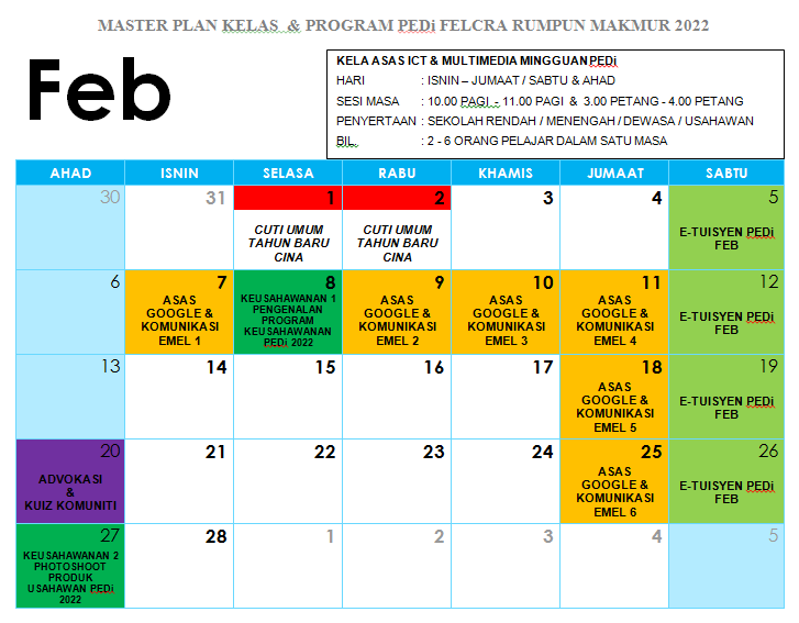 TARIKH :19 DISEMBER 2021 MASA :10.45PAGI LOKASI :PEDi Rumpun Makmur TUJUAN Kelas ini bertujuan untuk memberi input tambahan kepada pelajar dalam menguasai pembelajaran melalui pembelajaran secara atas talian.Pengajaran guru yang berpengalaman pastinya dapat […]
