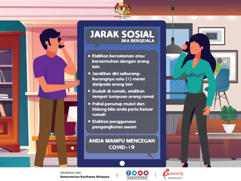 Sentiasa mengamalkan jarak sosial 1 meter apabila berada di tempat awam bagi mengurangkan risiko untuk dijangkiti virus covid-19 Sumber :KKM